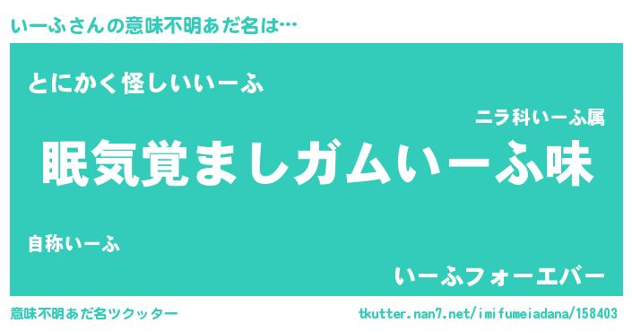 | 男性向けラノベタイトル風あだ名 | 『おまえをオタクにしてやるから、俺をいーふにしてくれ! 』 |