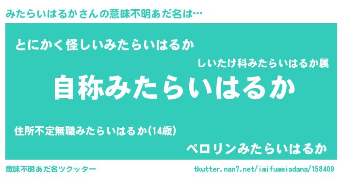 | 男性向けラノベタイトル風あだ名 | 『Re:みたらいはるかから始める異世界生活』 |