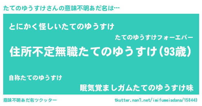 | ポケモン風あだ名 | 『ターテイ』『ヒタテノユウスケ』 |