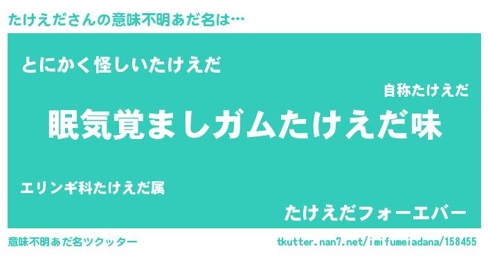| ヒーロー風カッコイイあだ名 | 『正義の使者たけえだ』『暗黒騎士タケ』 |