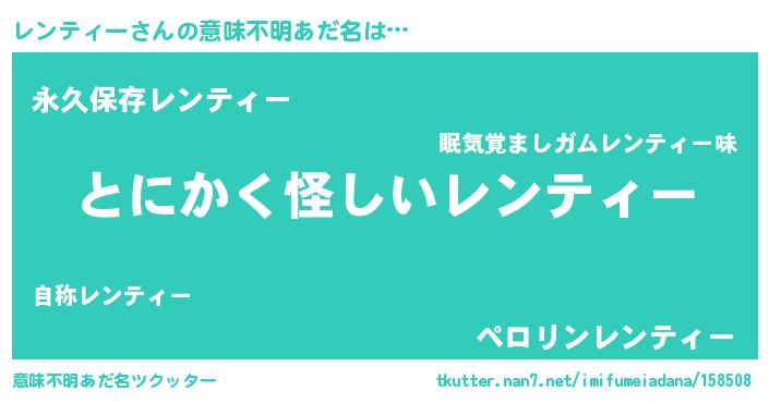 | 男性向けラノベタイトル風あだ名 | 『レンティーの嫁は女の子じゃないと思った?』 |