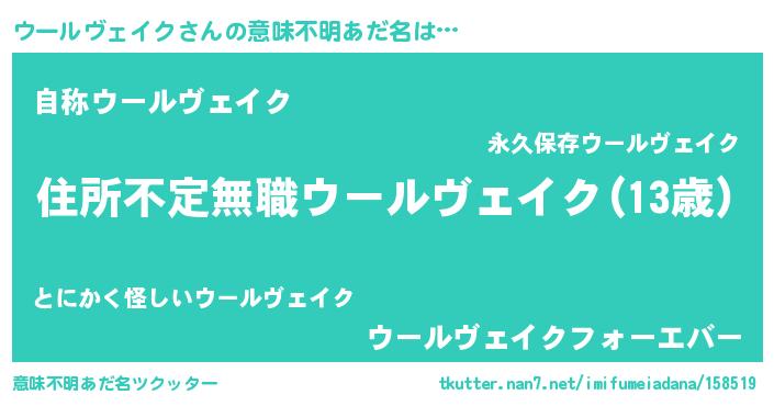 | ヒーロー風カッコイイあだ名 | 『仮面ウーダー』『ネオウールヴェイク』 |
