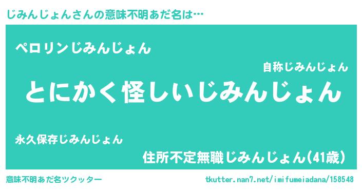 | 女子向けラノベタイトル風あだ名 | 『じみんじょんの卵を拾いまして』 |