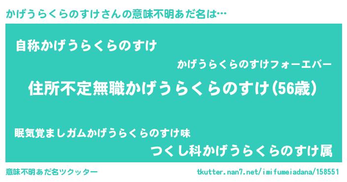 | 欧米人風あだ名 | 『ダレノガレかげうらくらのすけ』 |