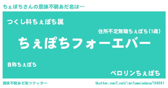 | 女子向けラノベタイトル風あだ名 | 『ちぇぽちの雑貨屋さん』 |