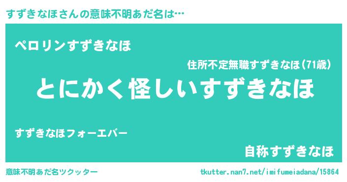 | ヒーロー風カッコイイあだ名 | 『炎刃騎士スズ』『スーパースズキナホ』 |