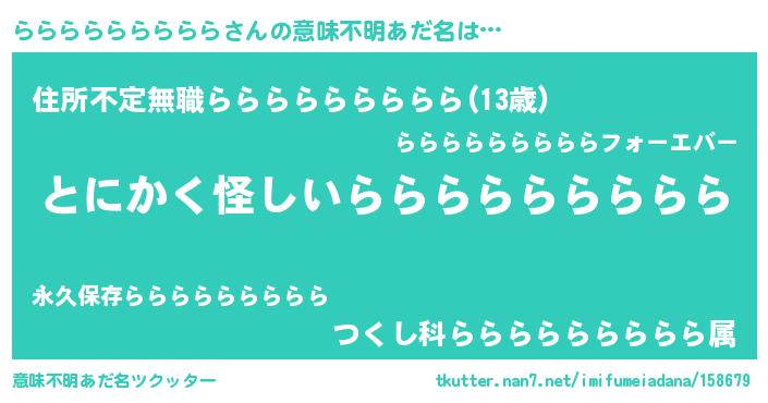 | 男性向けラノベタイトル風あだ名 | 『らららららららららの嫁は女の子じゃないと思った?』 |