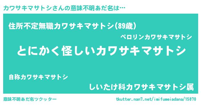| ポケモン風あだ名 | 『ヒカワサキマサトシ』『カーワイ』 |