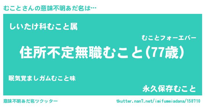| 男性向けラノベタイトル風あだ名 | 『魔弾の王とむこと』『ムコトスレイヤー』 |