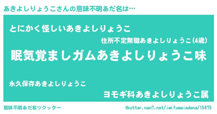 | 男性向けラノベタイトル風あだ名 | 『あきよしりょうこに滅ぼされるだけの簡単なお仕事です』 |