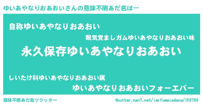 | 伝説のあだ名 | 『古文書に記された勇者ゆいあやなりおあおい』 |