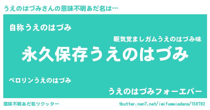 | 男性向けラノベタイトル風あだ名 | 『うえのはづみという概念が存在しない退屈な世界 』 |