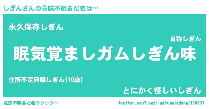 | ヘコむあだ名 | 『しぎん(震え声)』『しぎ太郎』 |
