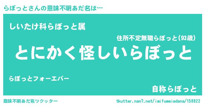 | 伝説のあだ名 | 『解き放たれた遊び人らぼっと』 |