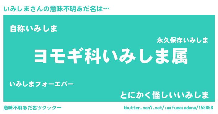 | ヒーロー風カッコイイあだ名 | 『究極戦士イミシマ』『銀牙騎士イミ』 |
