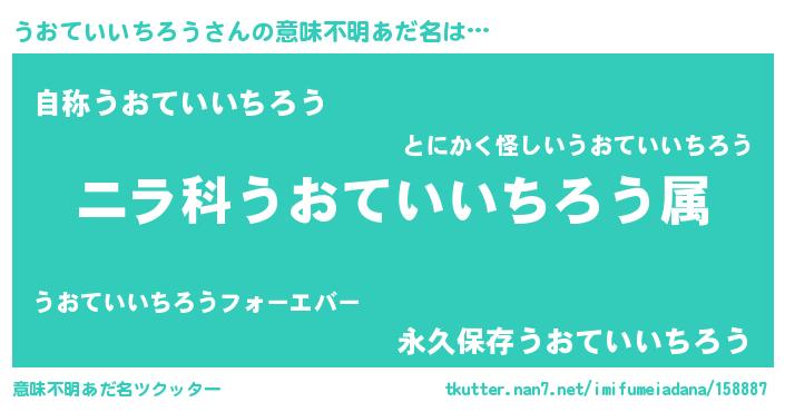 | 男性向けラノベタイトル風あだ名 | 『うおていいちろう~年齢イコール彼女いない歴の魔法使い~』 |