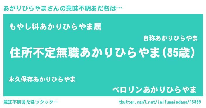 | 男性向けラノベタイトル風あだ名 | 『この素晴らしい世界にあかりひらやまを!』 |