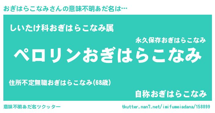 | 胡散臭い通販商品みたいなあだ名 | 『必ず成功するブレスレット…その名も「おぎはらこなみ」』 |
