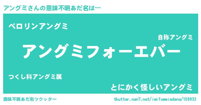 | ファンタジー風あだ名 | 『エターナルアングミー』『アンフェル』 |