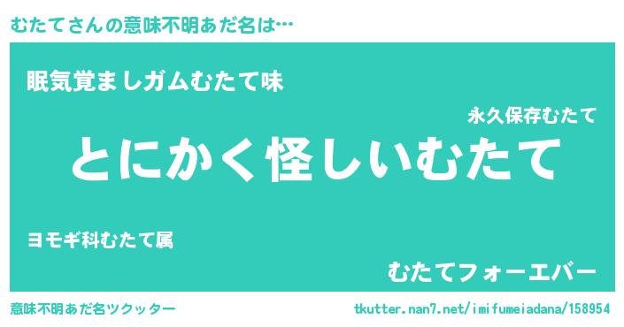 | ヘコむあだ名 | 『むたっ子』『豆乳』『むたて(笑)』 |