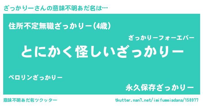 | 胡散臭い通販商品みたいなあだ名 | 『信頼と実績のネックレス…その名も「ざっかりー」』 |