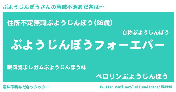 | ファンタジー風あだ名 | 『エターナルブヨウジンボウー』 |