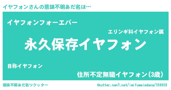 | 男性向けラノベタイトル風あだ名 | 『イヤフォンという概念が存在しない退屈な世界 』 |