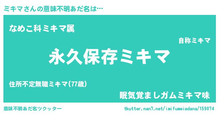 | 胡散臭い通販商品みたいなあだ名 | 『来世でも幸せになれる健康食品…その名も「ミキマ」』 |