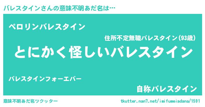 | 男性向けラノベタイトル風あだ名 | 『バレスタインの嫁は女の子じゃないと思った?』 |