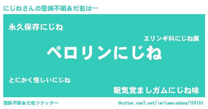 | 男性向けラノベタイトル風あだ名 | 『にじねの憂鬱』『ニジネスレイヤー』 |