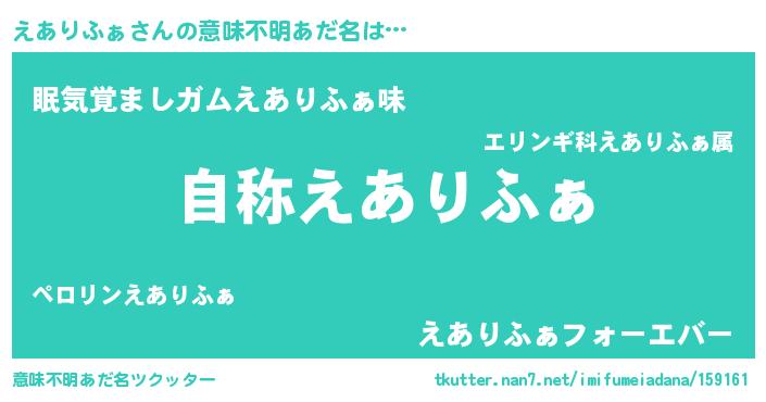 | 男性向けラノベタイトル風あだ名 | 『魔法科高校のえありふぁ』 |