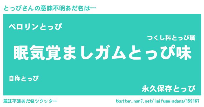 | ヒーロー風カッコイイあだ名 | 『慈愛の使者とっぴ』『スーパートッピ』 |