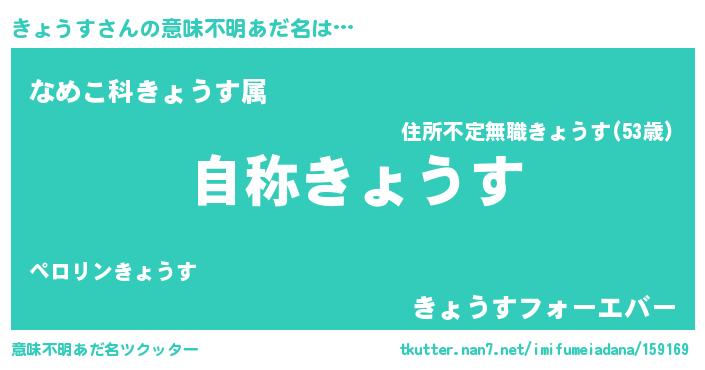 | 肩書あだ名 | 『きょうす総統』『きょうす大佐』 |