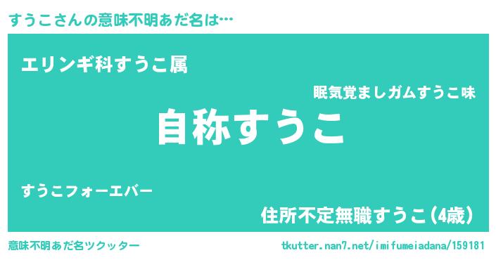 | 男性向けラノベタイトル風あだ名 | 『Re:すうこから始める異世界生活』 |