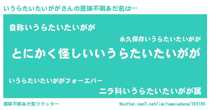 | 男性向けラノベタイトル風あだ名 | 『いうらたいたいががの嫁は女の子じゃないと思った?』 |