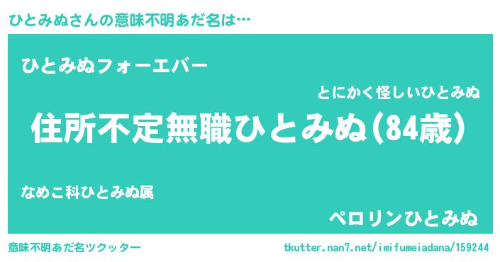 | 料理風あだ名 | 『ひとみぬのカルパッチョ風』 |