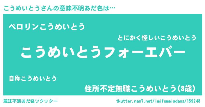 | 男性向けラノベタイトル風あだ名 | 『やはりこうめいとうの青春ラブコメはまちがっている 』 |