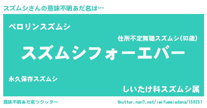| ヒーロー風カッコイイあだ名 | 『ウルトラスズムシマン』『仮面スズダー』 |