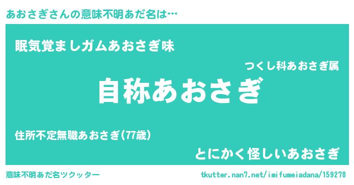 | 女子向けラノベタイトル風あだ名 | 『あおさぎストレイドッグス』 |
