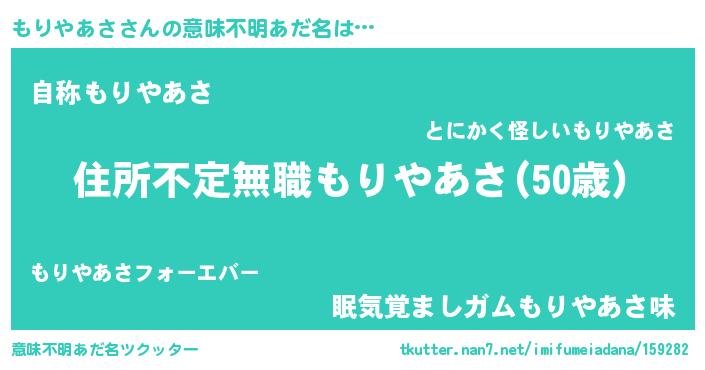| 女子向けラノベタイトル風あだ名 | 『乙女ゲームの破滅フラグしかない悪役もりやあさに転生してしまった…』 |