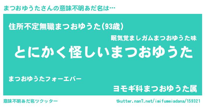 | ポケモン風あだ名 | 『マツゴンZ』『ヒマツオユウタ』 |