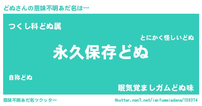 | 男性向けラノベタイトル風あだ名 | 『どぬという概念が存在しない退屈な世界 』 |