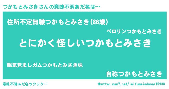 | 男性向けラノベタイトル風あだ名 | 『つかもとみさきの嫁は女の子じゃないと思った?』 |