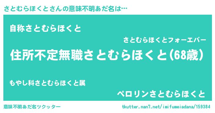 | ヘコむあだ名 | 『さともー』『酢こんぶ』『さとっぺ』 |