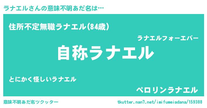 | ヒーロー風カッコイイあだ名 | 『サイバー戦士ラナエル』『仮面ラナダー』 |