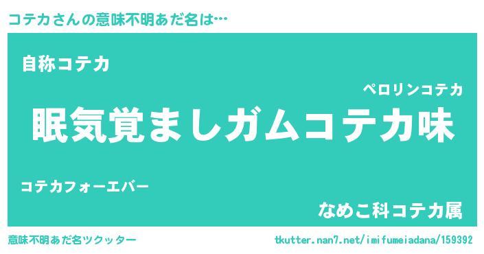 | 女子向けラノベタイトル風あだ名 | 『死神コテカの再婚』『闇のコテカ』 |