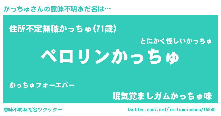 | 男性向けラノベタイトル風あだ名 | 『かっちゅの憂鬱』『魔弾の王とかっちゅ』 |