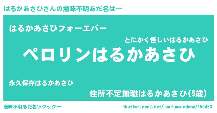 | 胡散臭い通販商品みたいなあだ名 | 『モテモテ間違いなし霊験あらたかなお札…その名も「はるかあさひ」』 |