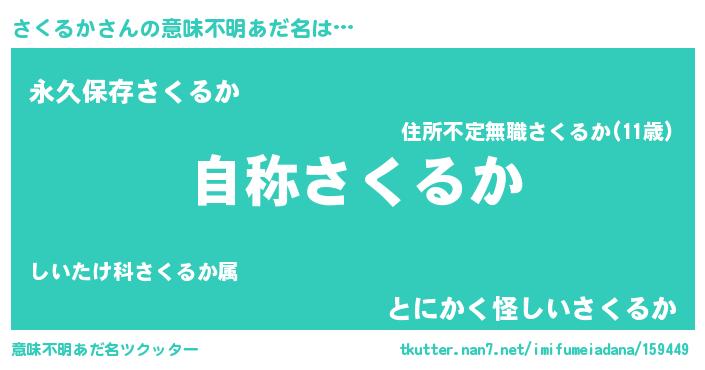 | 欧米人風あだ名 | 『さくるか・ステッグマイヤー』 |