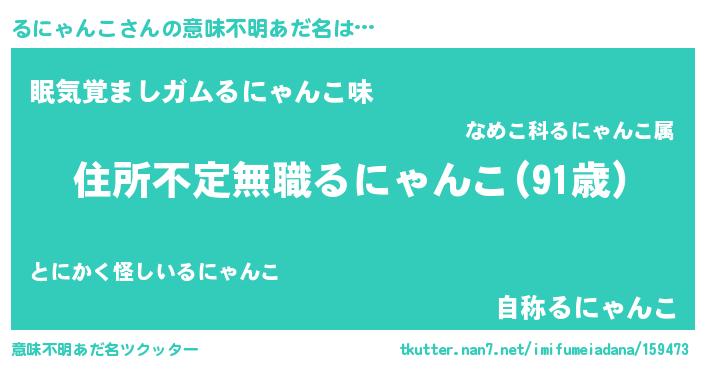 | ヒーロー風カッコイイあだ名 | 『仮面ルニダー』『正義の使者るにゃんこ』 |